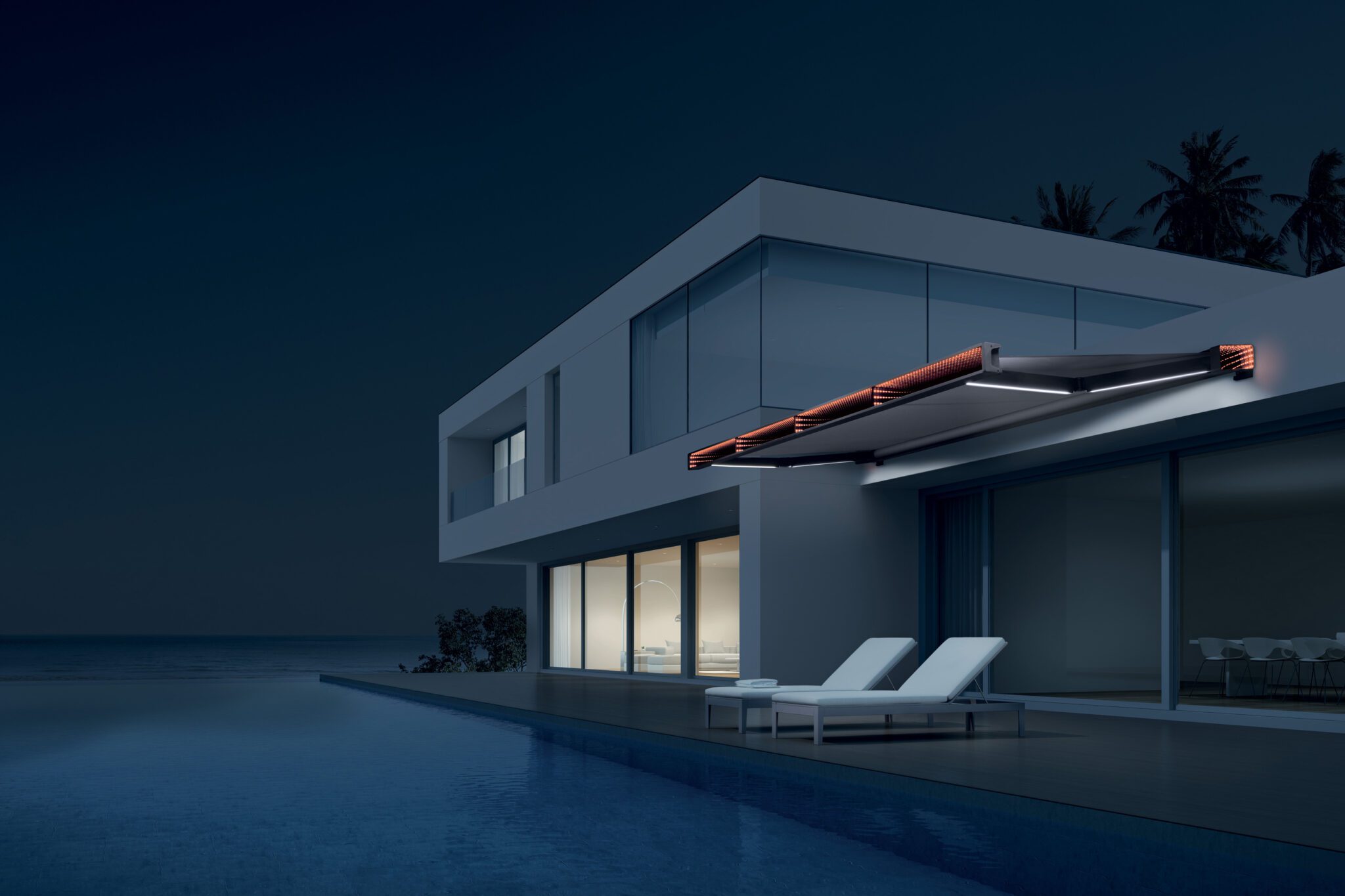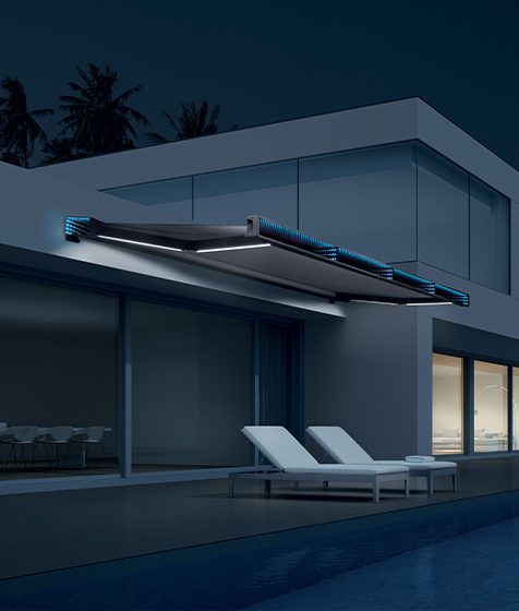 ILE rappresenta la perfetta fusione tra tecnologia e design, con effetti visivi sorprendenti sia di giorno che di notte, trasformando la tenda da sole in un elemento distintivo e funzionale, perfetto per ogni outdoor dalle linee moderne.