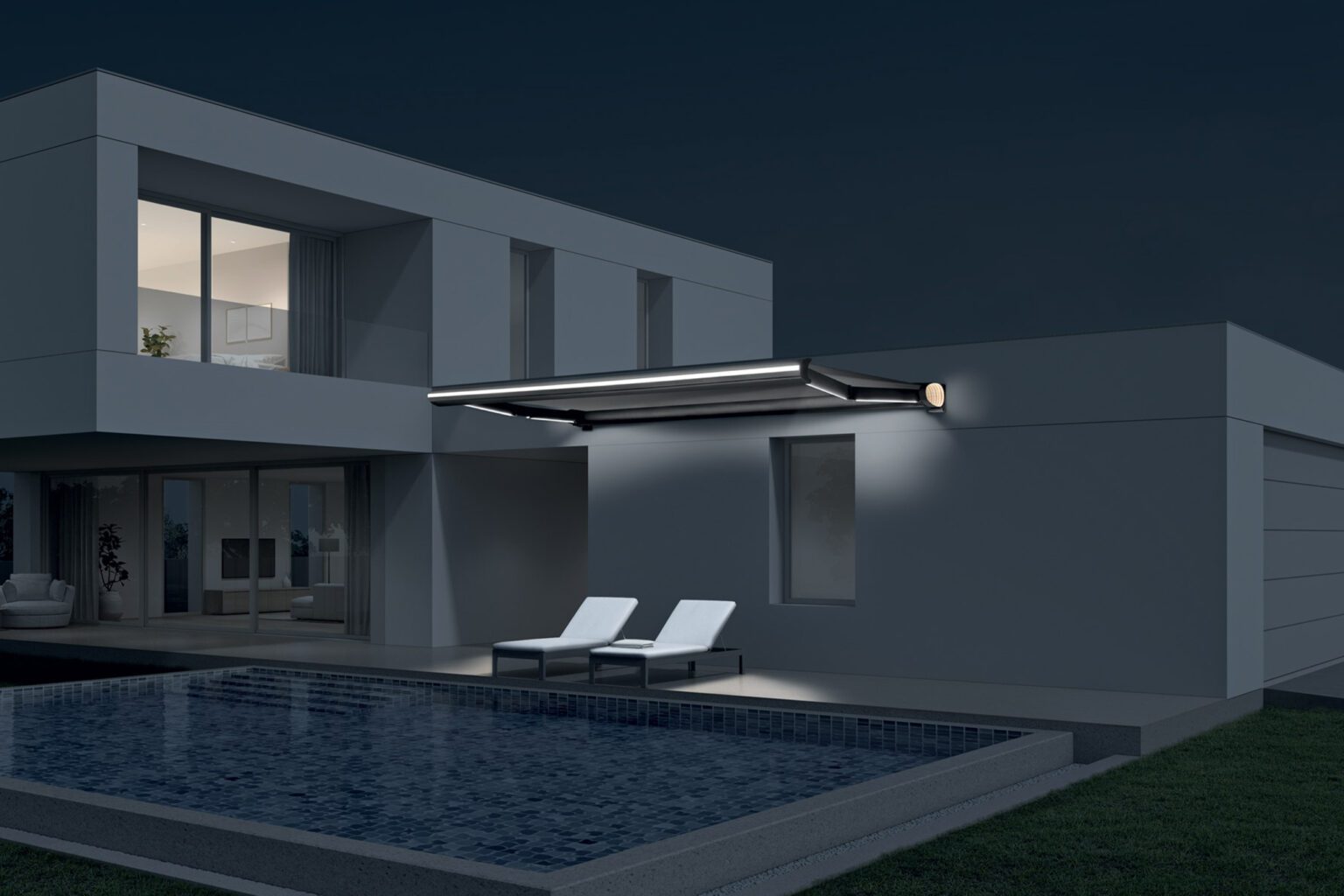 GRUIS WHITE INTENSE, con il suo design minimal, è un elemento essenziale, perfettamente adattabile a qualsiasi ambiente. GRUIS WHITE INTENSE è dotata del sistema ILE B&W con illuminazione LED bianco puro, integrato lateralmente e coordinato con il sistema lighting nella parte frontale. Permette di ottenere effetti visivi sorprendenti. Il design, sottile e pulito, eleva la tenda da un semplice accessorio a protagonista dell’ambiente esterno, invitando a vivere l’outdoor come uno spazio senza tempo, grazie anche ai bracci con luce led bianca dimmerabile.