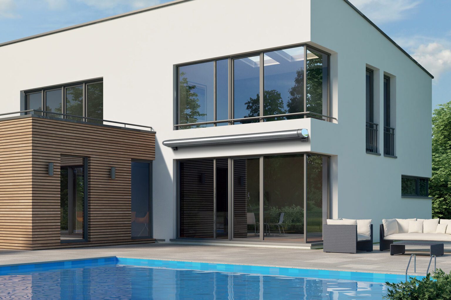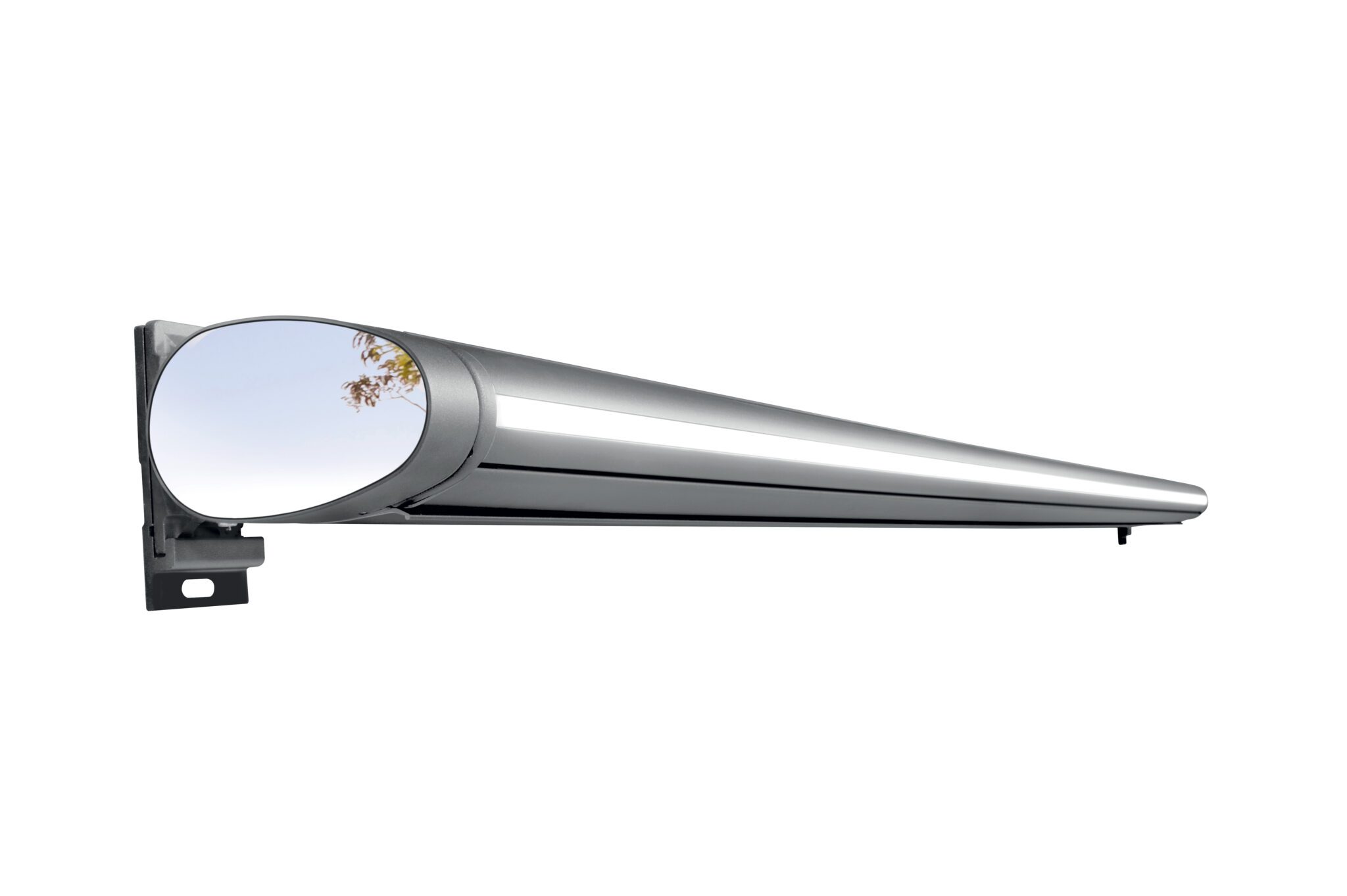 GRUIS WHITE INTENSE, grazie ai moduli ILE integrati lateralmente, durante il giorno riflette il paesaggio circostante grazie a superfici specchiate in vetro temprato di elevata qualità. Con la sua sporgenza fino a 3 metri e la larghezza fino a 6 metri, si adatta perfettamente a molteplici soluzioni. Un design che fonde eleganza e praticità in una soluzione innovativa, ideale per l’ambiente esterno moderno.