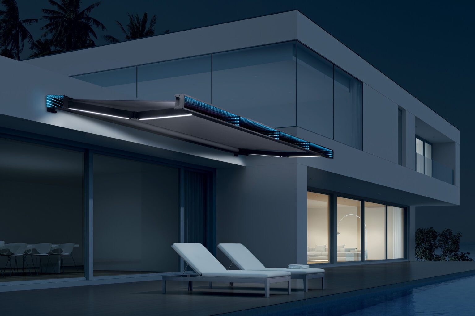 Il design, leggero e sofisticato, eleva la tenda da un semplice accessorio a protagonista dell’ambiente esterno, invitando a vivere l’outdoor come uno spazio senza tempo, grazie anche ai bracci con luce led bianca dimmerabile. I moduli ILE permettono un controllo totale del colore della luce, in una vasta gamma di tonalità cromatiche.